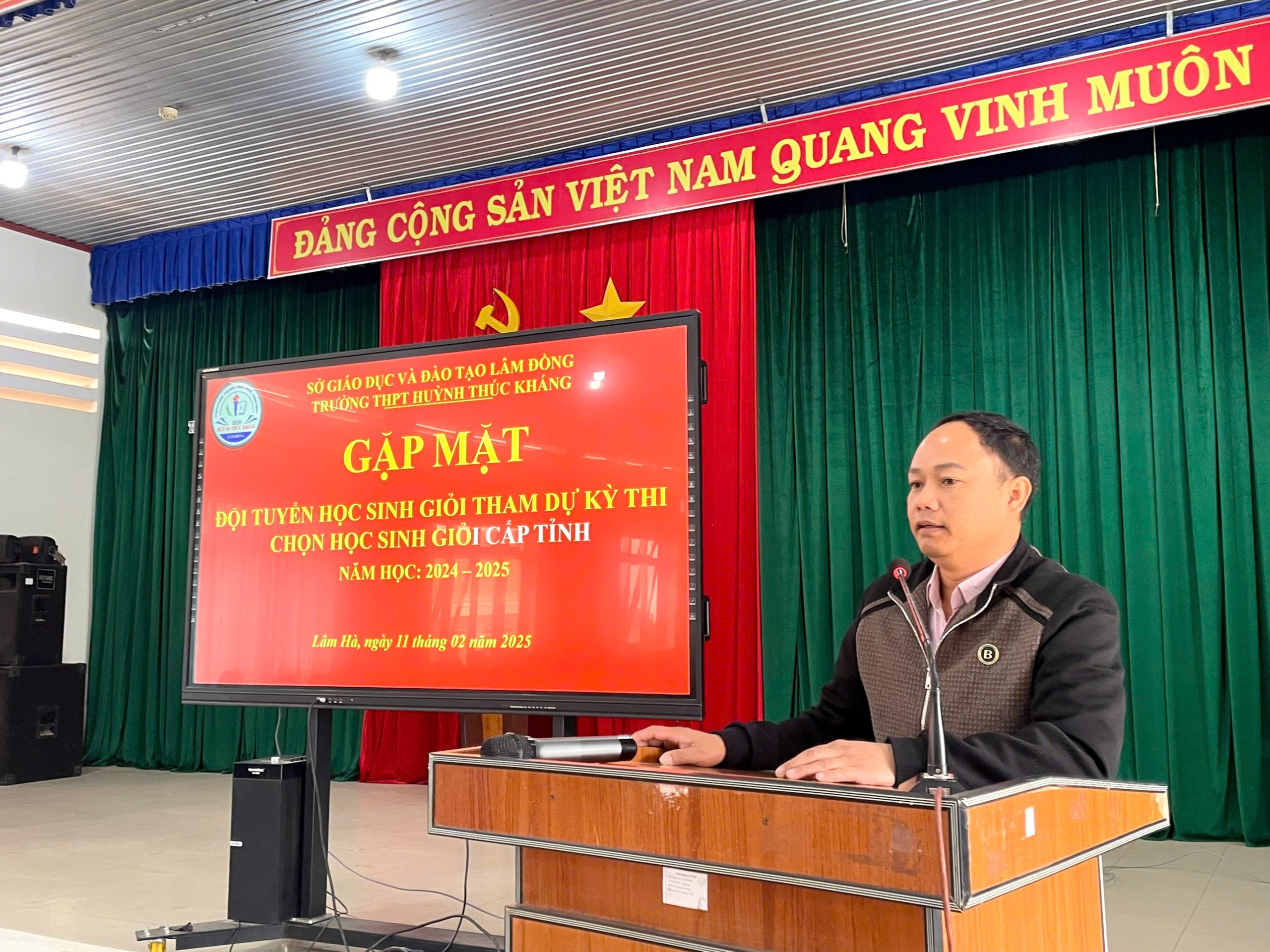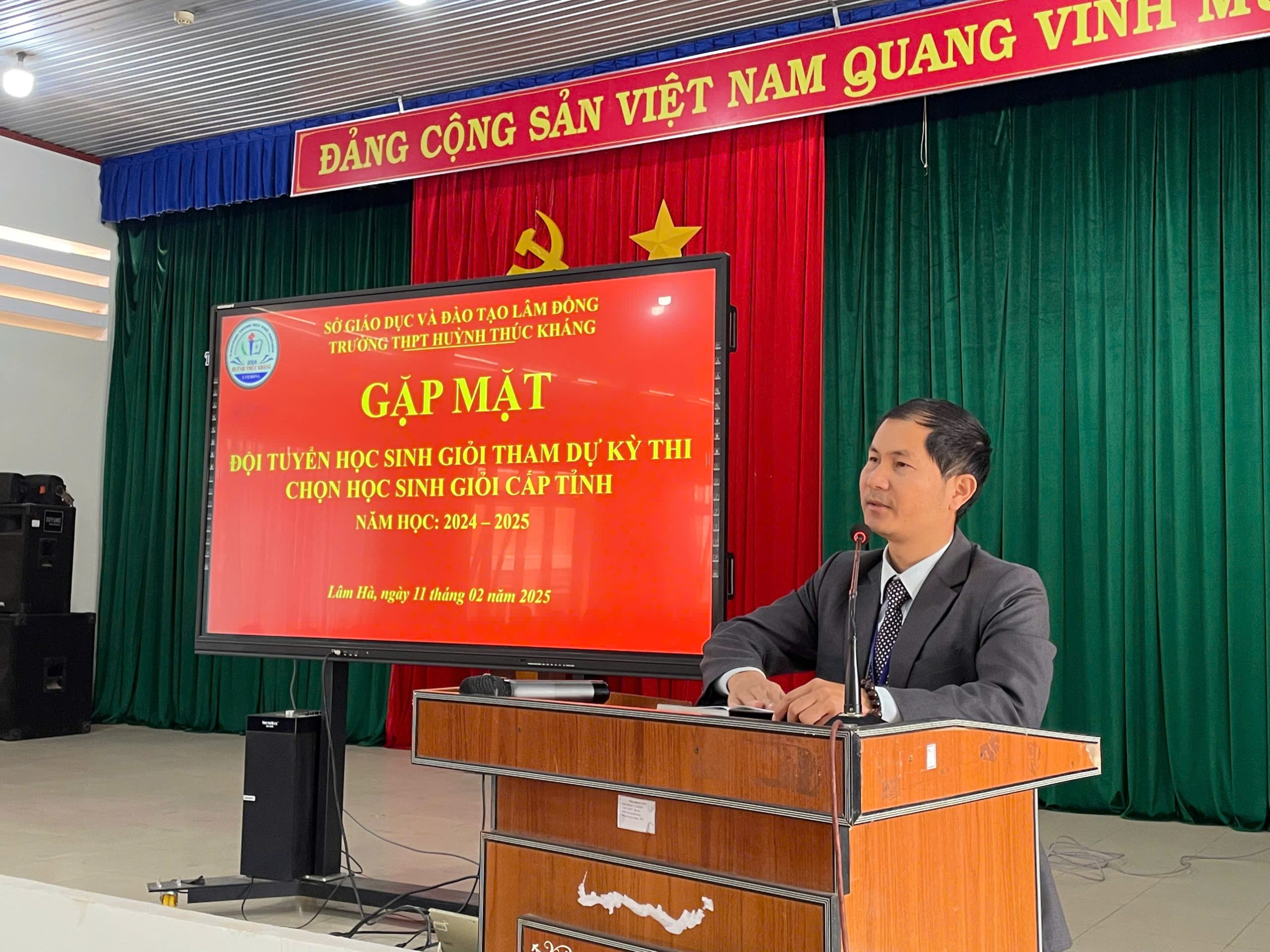 Thực hiện kế hoạch của Sở Giáo dục và Đào tạo tỉnh Lâm Đồng về việc tổ chức Kỳ thi chọn học sinh giỏi cấp tỉnh lớp 12 năm học 2024-2025. Sáng ngày 11 tháng 02 năm 2025, trường THPT Huỳnh Thúc Kháng đã tổ chức buổi gặp mặt đội tuyển học sinh để động viên tinh thần, tiếp thêm sức mạnh và động lực để các em bước vào kỳ thi. Buổi gặp mặt diễn ra trong không khí trang trọng, ấm áp với sự hiện diện của ban lãnh đạo nhà trường, các thầy giáo, cô giáo bồi dưỡng đội tuyển, các bậc cha mẹ học sinh và 59 em học sinh – những gương mặt tiêu biểu, ưu tú đại diện cho hơn 1000 học sinh trường THPT Huỳnh Thúc Kháng tham gia kì thi học sinh giỏi cấp tỉnh ở các bộ môn Toán học, Ngữ văn, Tiếng Anh, Lịch sử, Địa lí, Sinh học,Vật lí, Hóa học và Tin học.