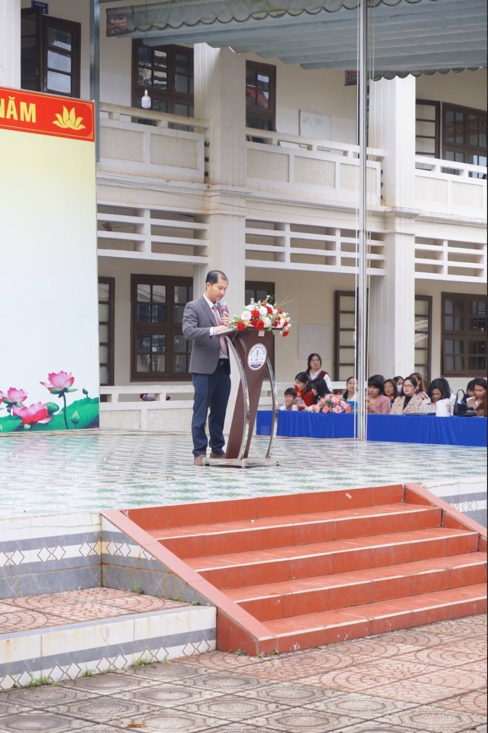 Thầy Hiệu trưởng Bùi Văn Sơn đọc diễn văn chúc mừng ngày Nhà giáo Việt Nam