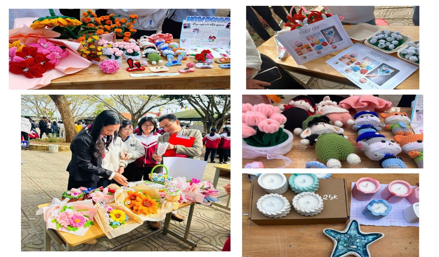 Tiếp đến ở lĩnh vực handmade có 9 sản phẩm dự thi được thiết kế tinh xảo, đẹp mắt. Các sản phẩm thể hiện sự khéo léo, óc sáng tạo và khả năng thẩm mỹ của học sinh thông qua việc lựa chọn chất liệu, cách tạo hình và ý tưởng thiết kế. Không chỉ chú trọng đến hình thức, nhiều sản phẩm còn mang ý nghĩa thực tiễn và giá trị tinh thần, góp phần làm phong phú thêm nội dung của không gian sáng tạo trong ngày hội.