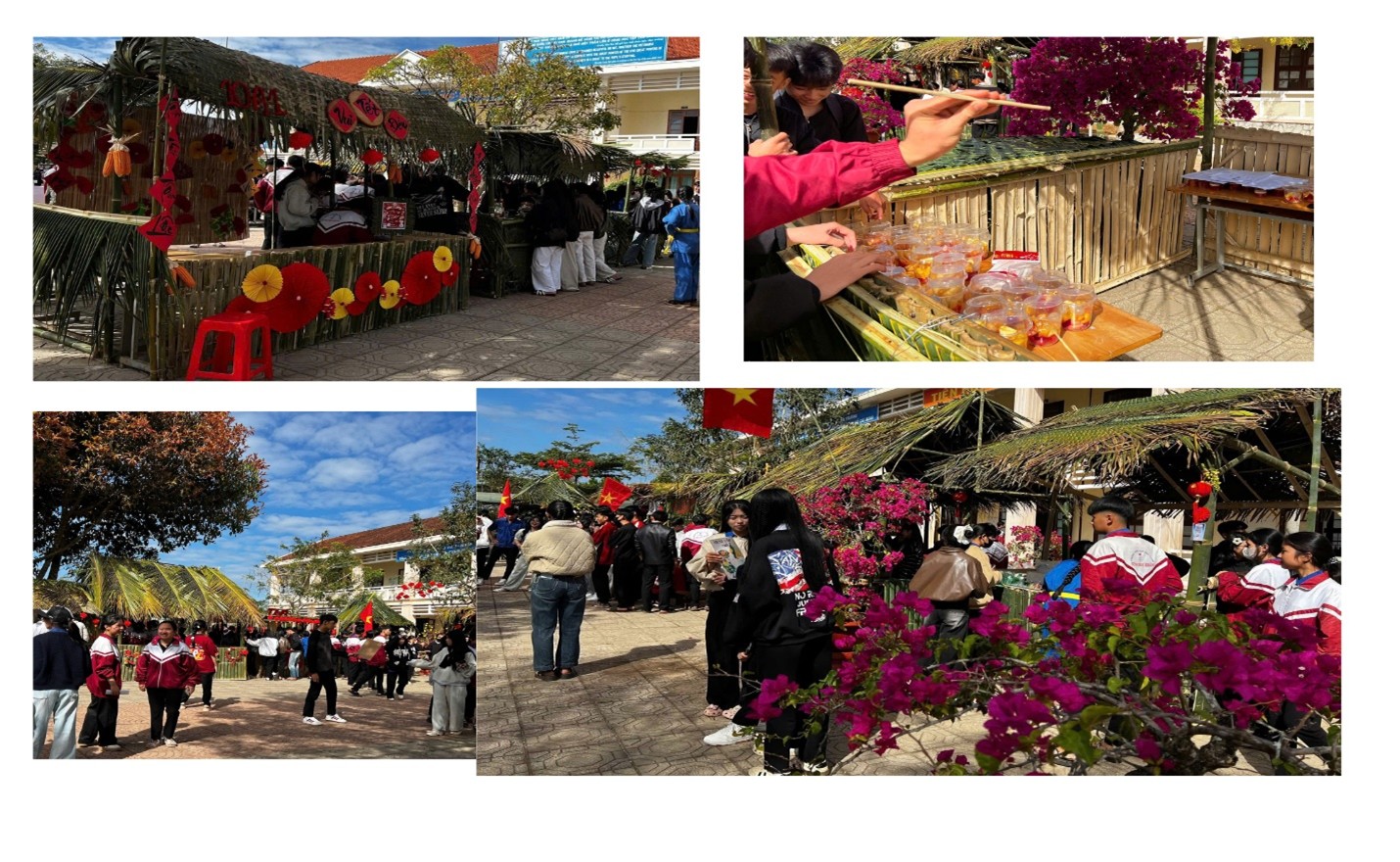 Song song với các hoạt động vận động, hệ thống gian hàng ẩm thực được tổ chức đa dạng, không chỉ đáp ứng nhu cầu ăn uống mà còn tạo điều kiện để học sinh rèn luyện kỹ năng kinh doanh, quản lý và tổ chức hoạt động tập thể.